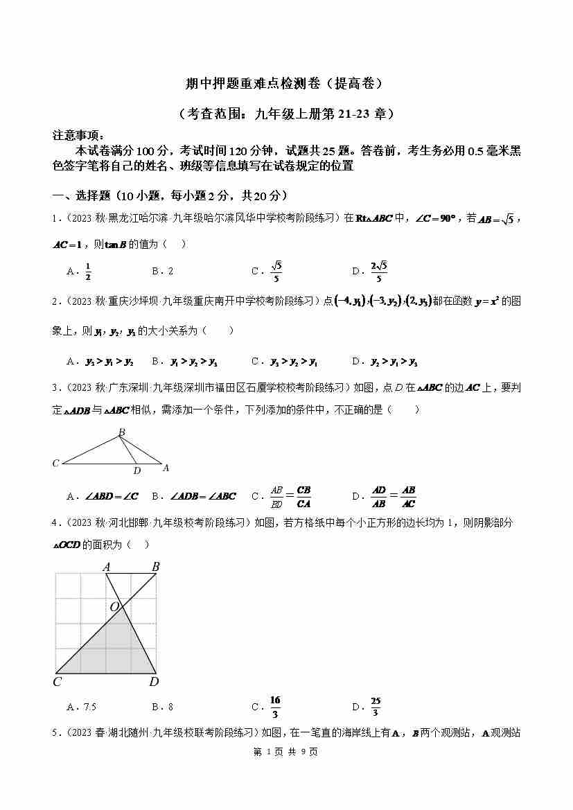 期中押题重难点检测卷(提高卷)(考试范围:第21-23章)(原卷版)