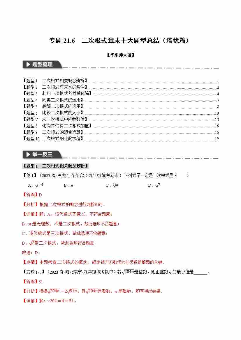 专题21.6 二次根式章末十大题型总结(培优篇)(华东师大版)(解析版)
