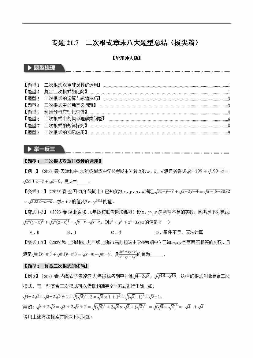 专题21.7 二次根式章末八大题型总结(拔尖篇)(华东师大版)(原卷版)