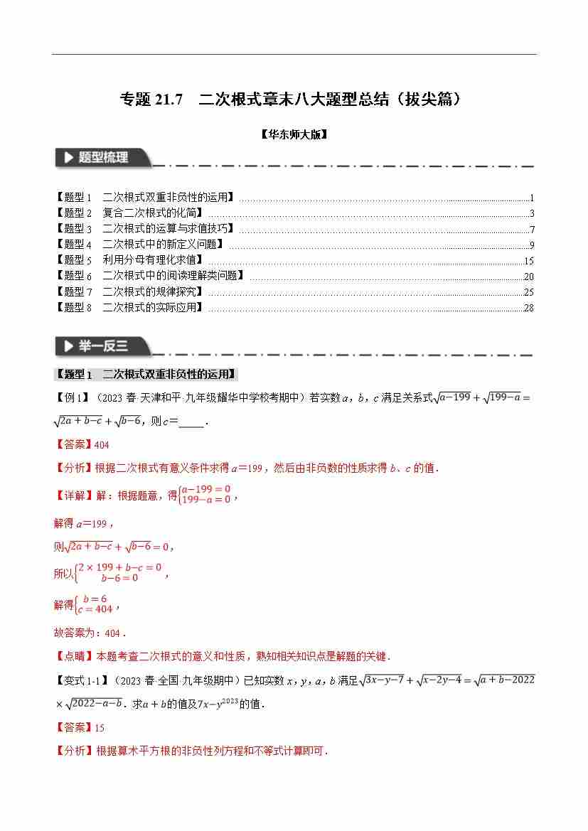 专题21.7 二次根式章末八大题型总结(拔尖篇)(华东师大版)(解析版)