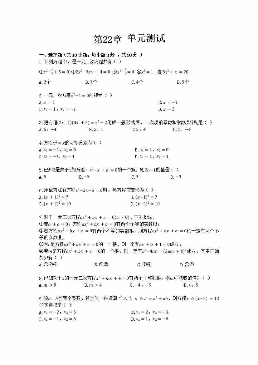 数学华东师大版九年级上第22章测试题