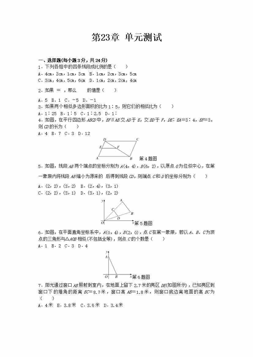 数学华东师大版九年级上第23章测试题