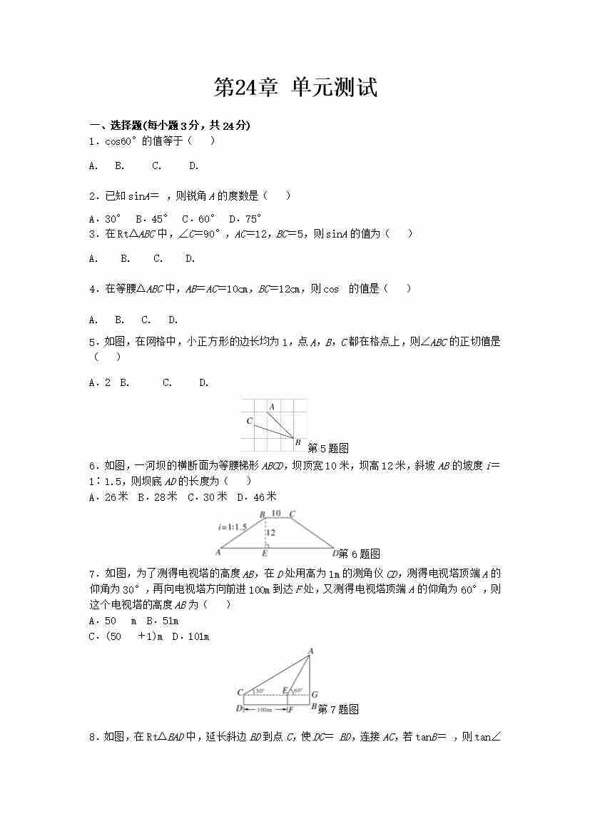数学华东师大版九年级上第24章测试题