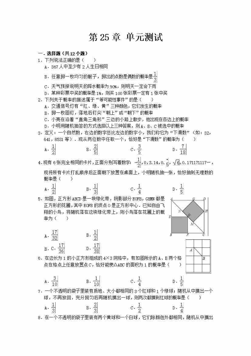 数学华东师大版九年级上第25章测试题