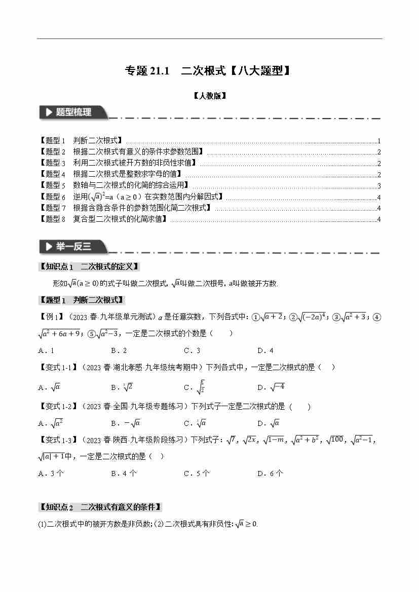 专题21.1 二次根式【八大题型】(举一反三)(华东师大版)(解析版)