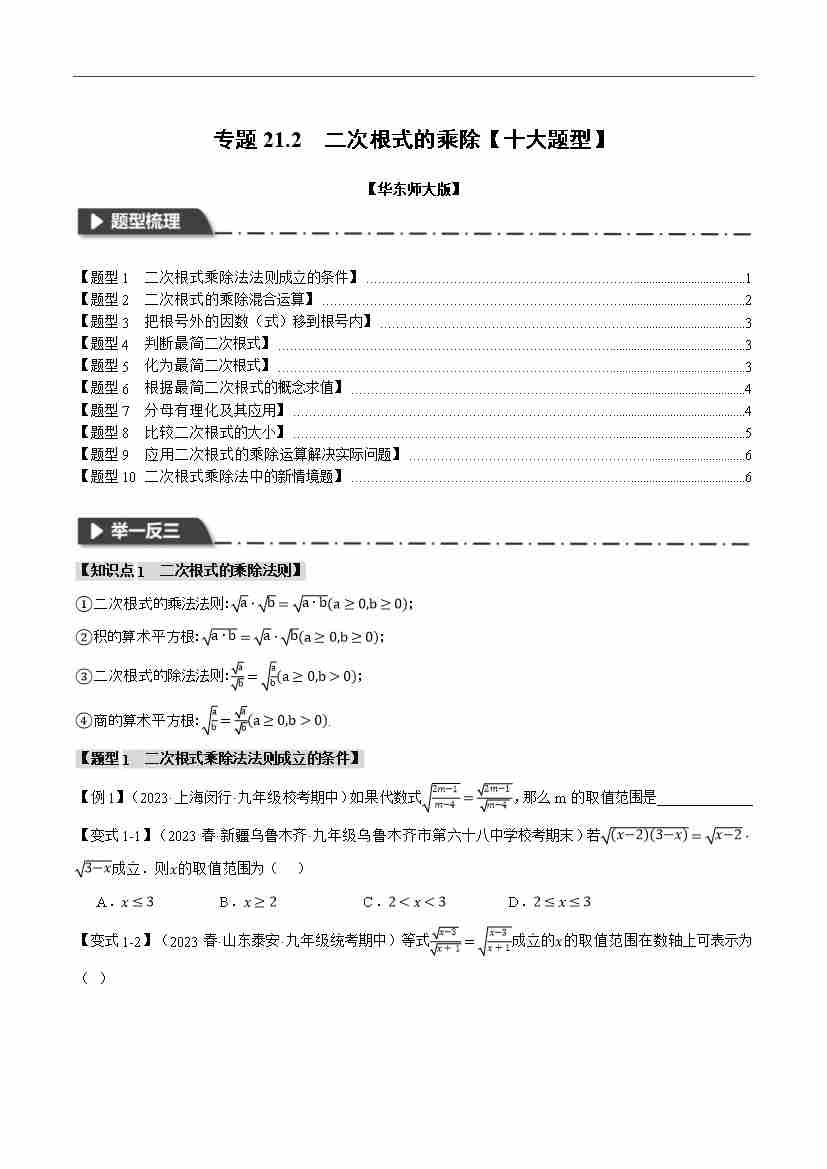 专题21.2 二次根式的乘除【十大题型】(举一反三)(华东师大版)(原卷版)
