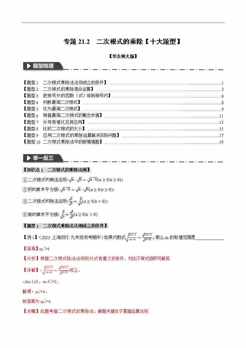 专题21.2 二次根式的乘除【十大题型】(举一反三)(华东师大版)(解析版)