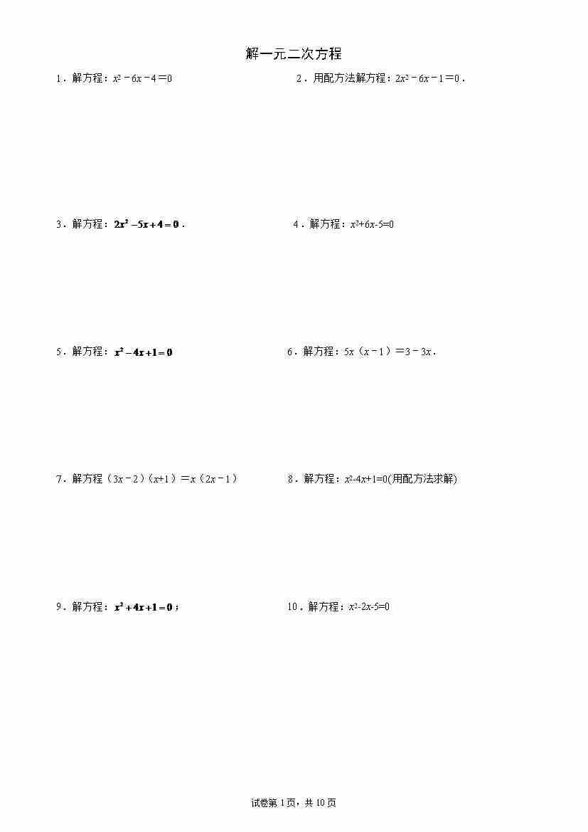 专题02 解一元二次方程九年级数学上学期期末解答题必刷专题训练(华师大版)(原卷版)