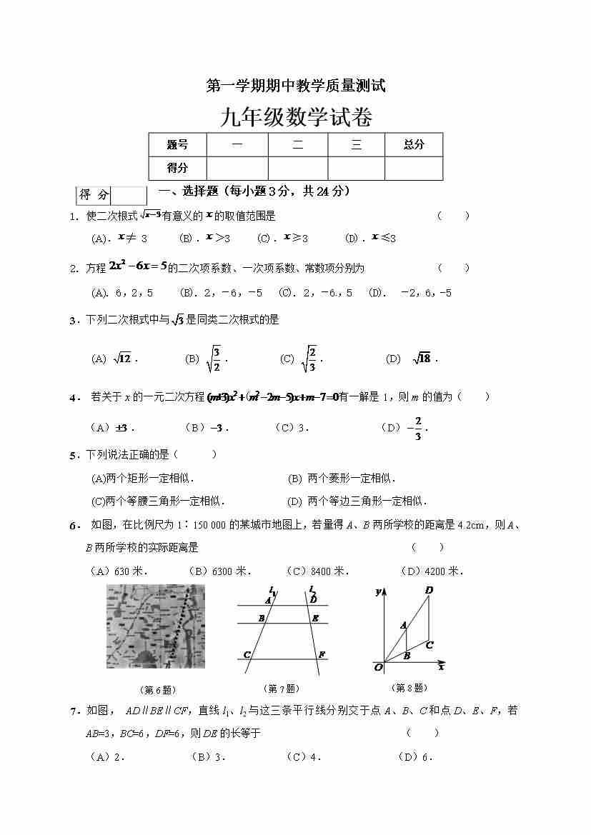 九年级上期末数学试卷---1