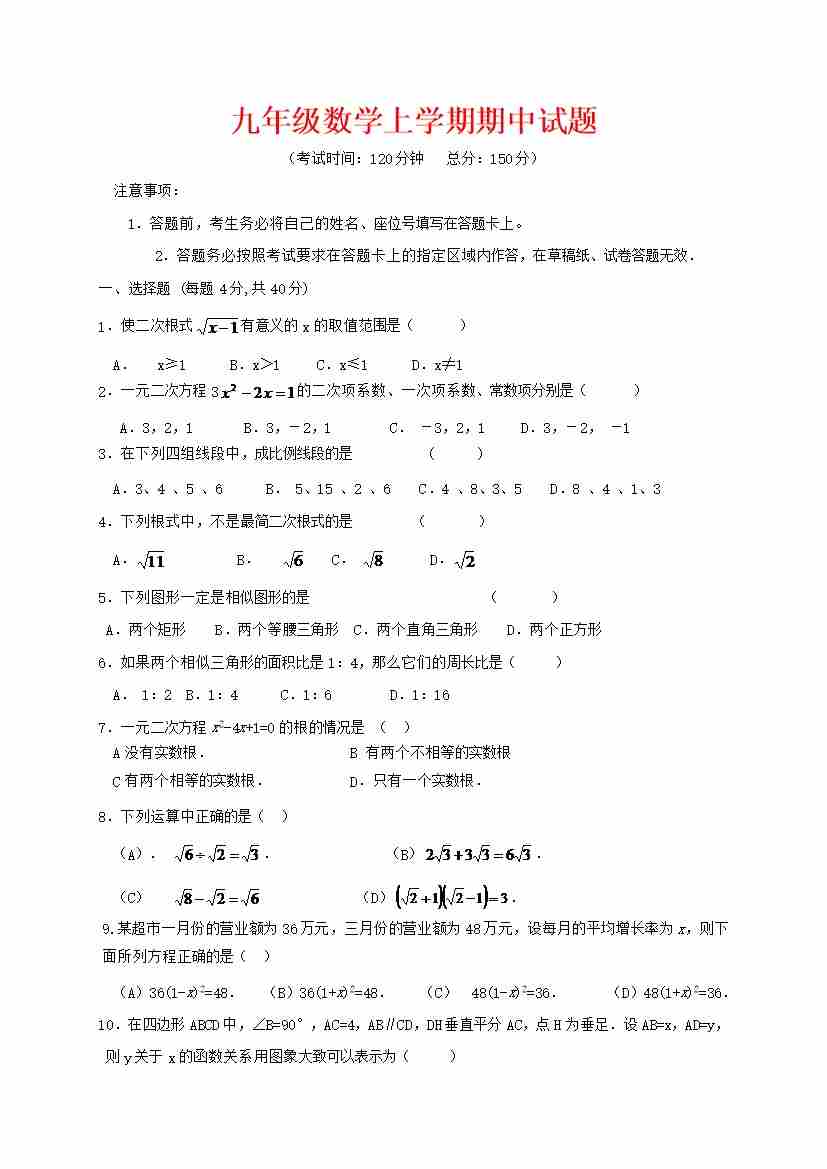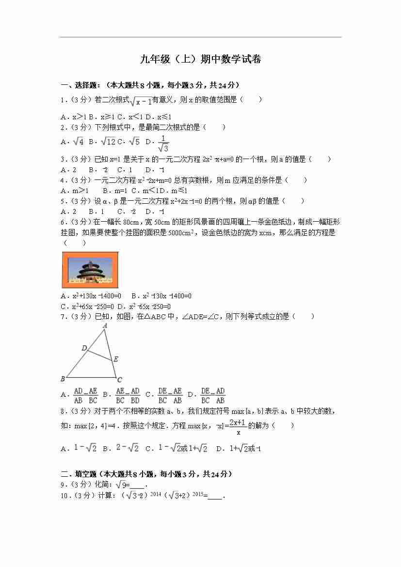 九年级(上)期中数学试卷