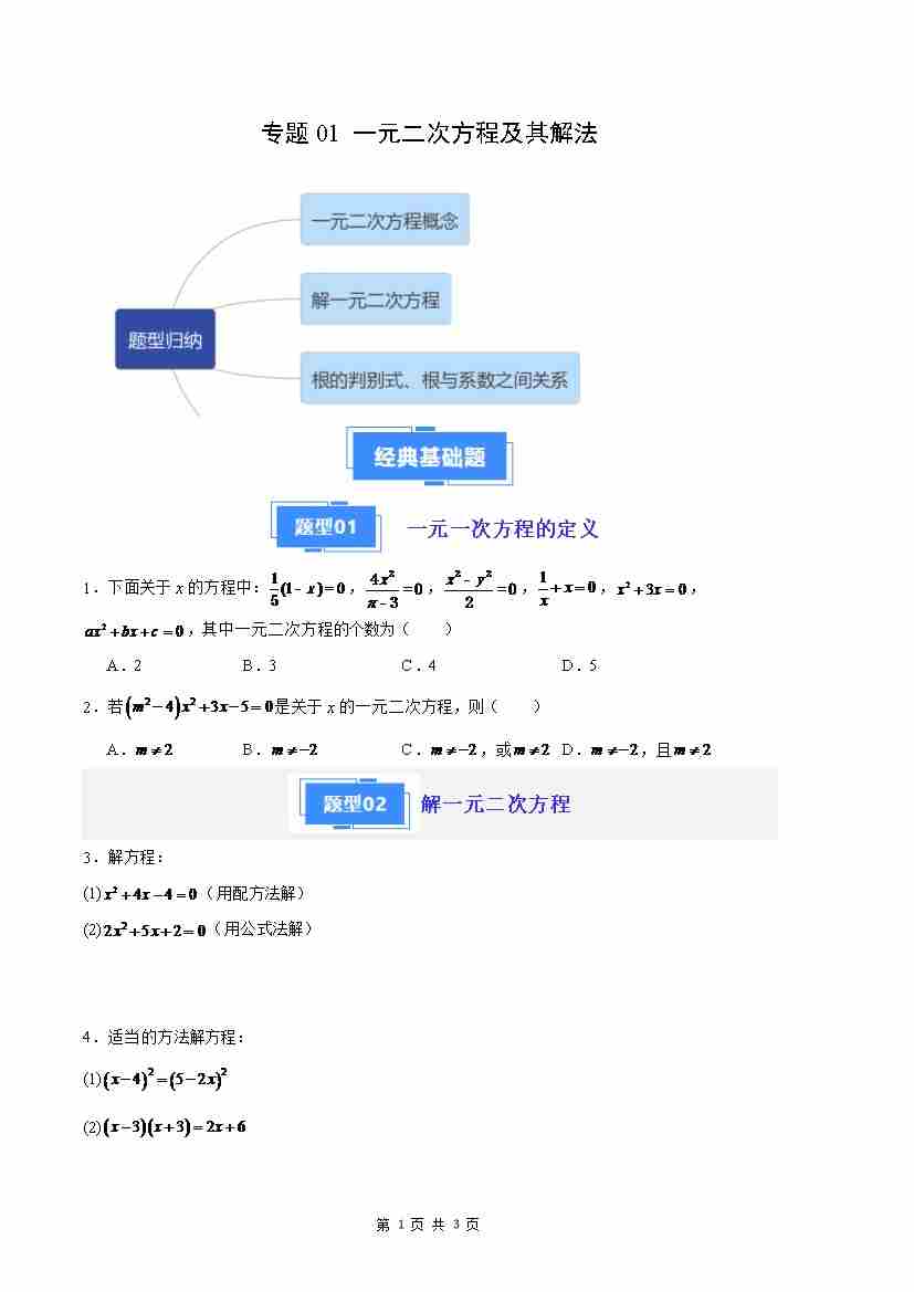专题01 一元二次方程及其解法(原卷版)(人教版)