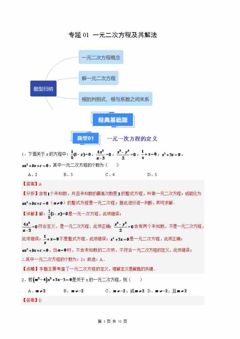 专题01 一元二次方程及其解法(解析版)(人教版)