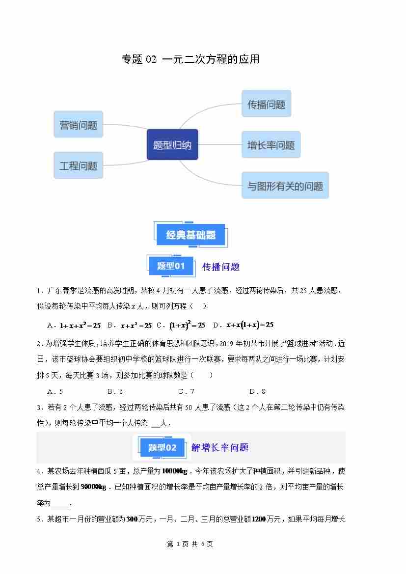 专题02 一元二次方程的应用(原卷版)(人教版)