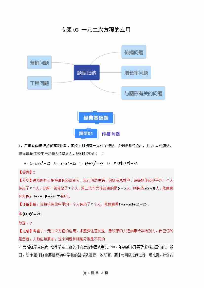 专题02 一元二次方程的应用(解析版)(人教版)