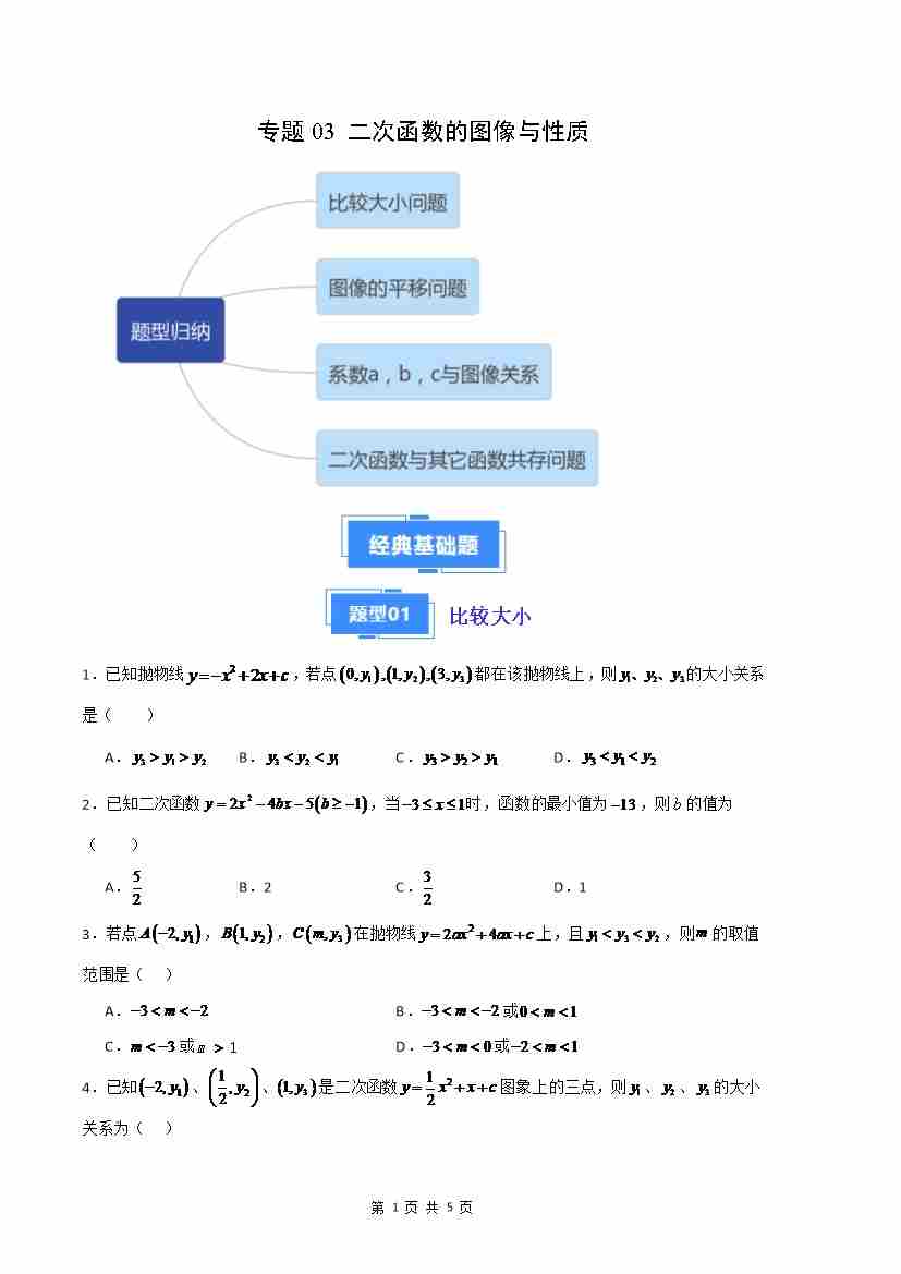 专题03 二次函数的图像与性质(原卷版)(人教版)