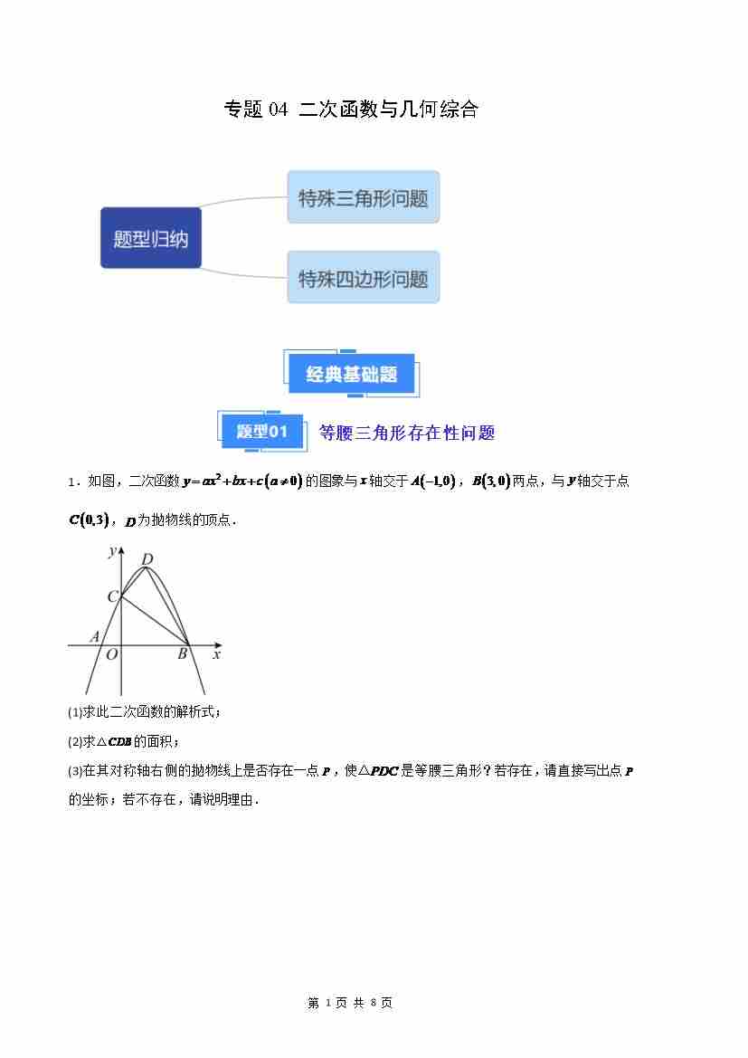 专题04 二次函数与几何综合(原卷版)(人教版)