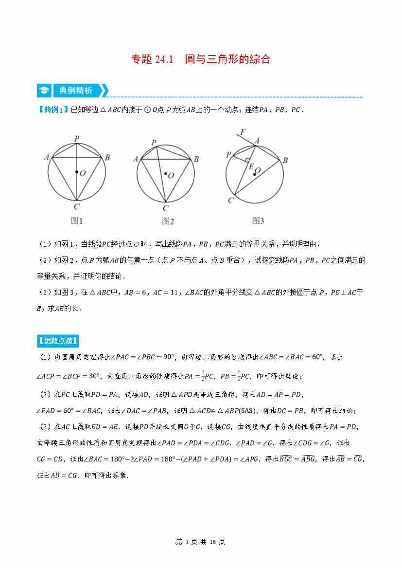 专题24.1 圆与三角形的综合(压轴题专项讲练)(人教版)(解析版)
