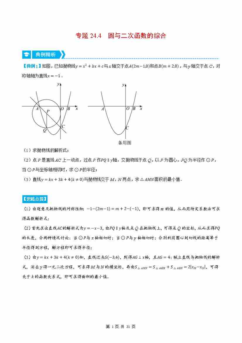 专题24.4 圆与二次函数的综合(压轴题专项讲练)(人教版)(解析版)