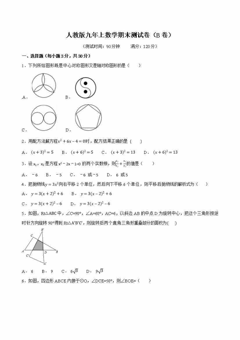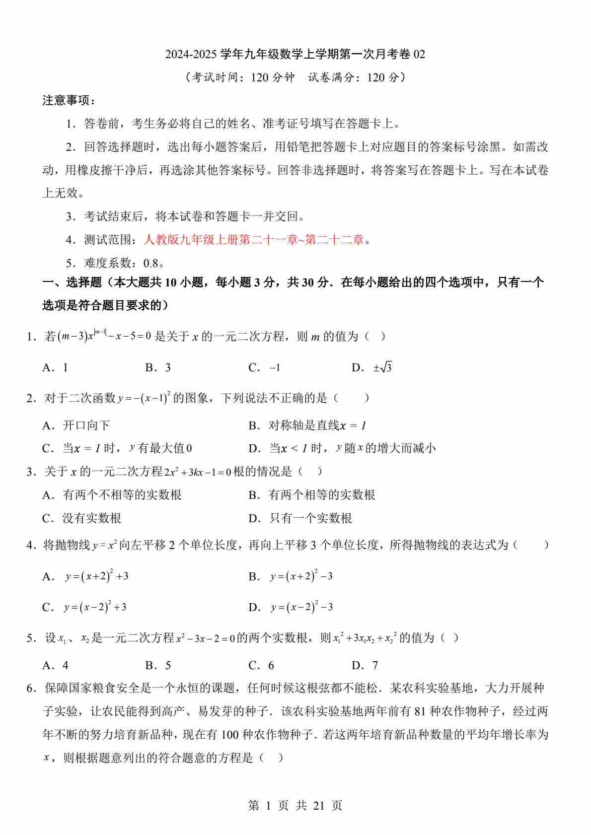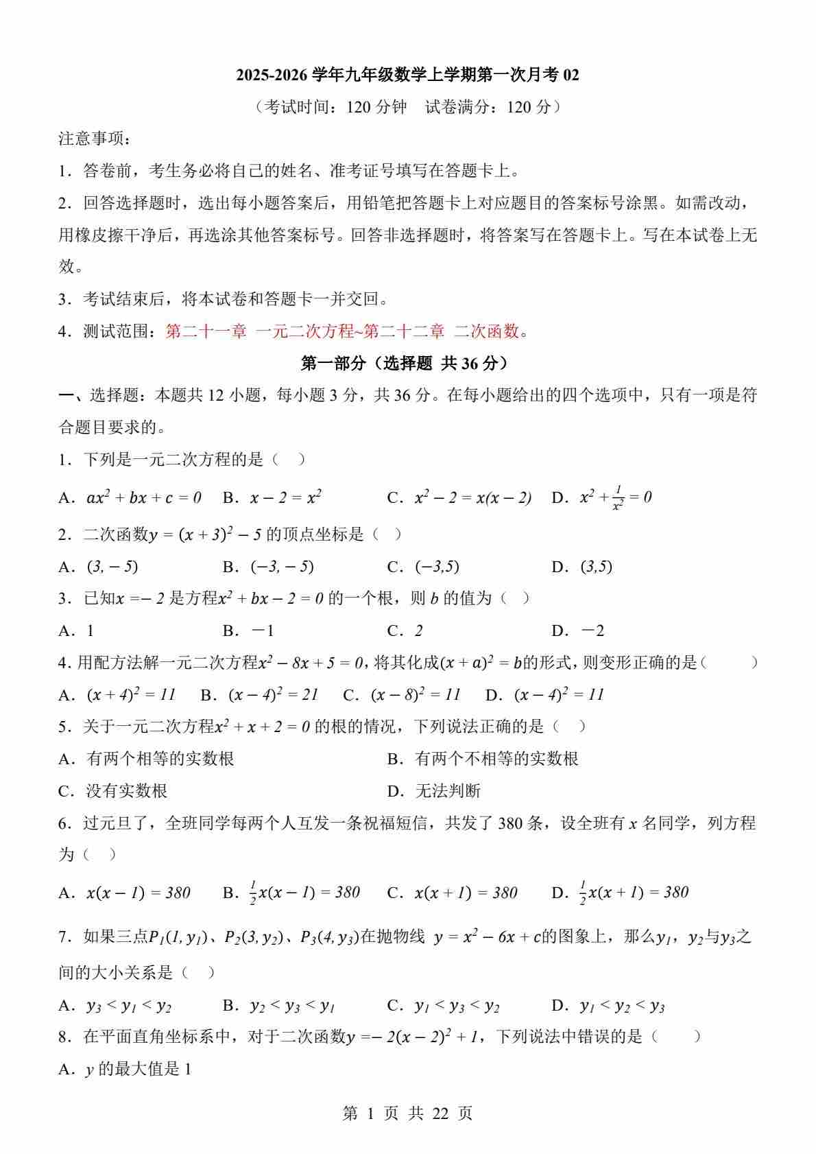 【人教】9上数学第1次月考02【第21-22章】(1)