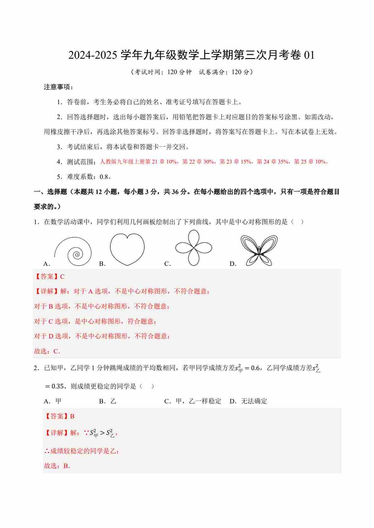 【人教】9上数学第1次月考02【第21-22章】