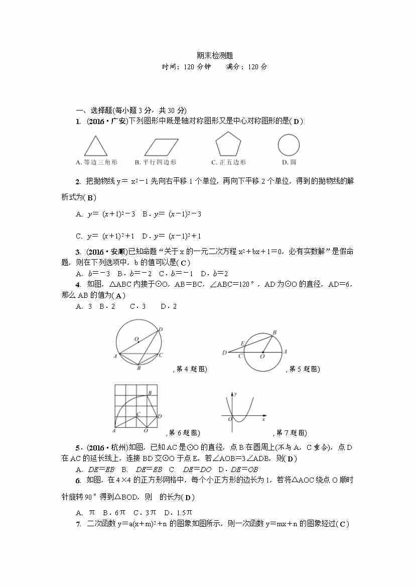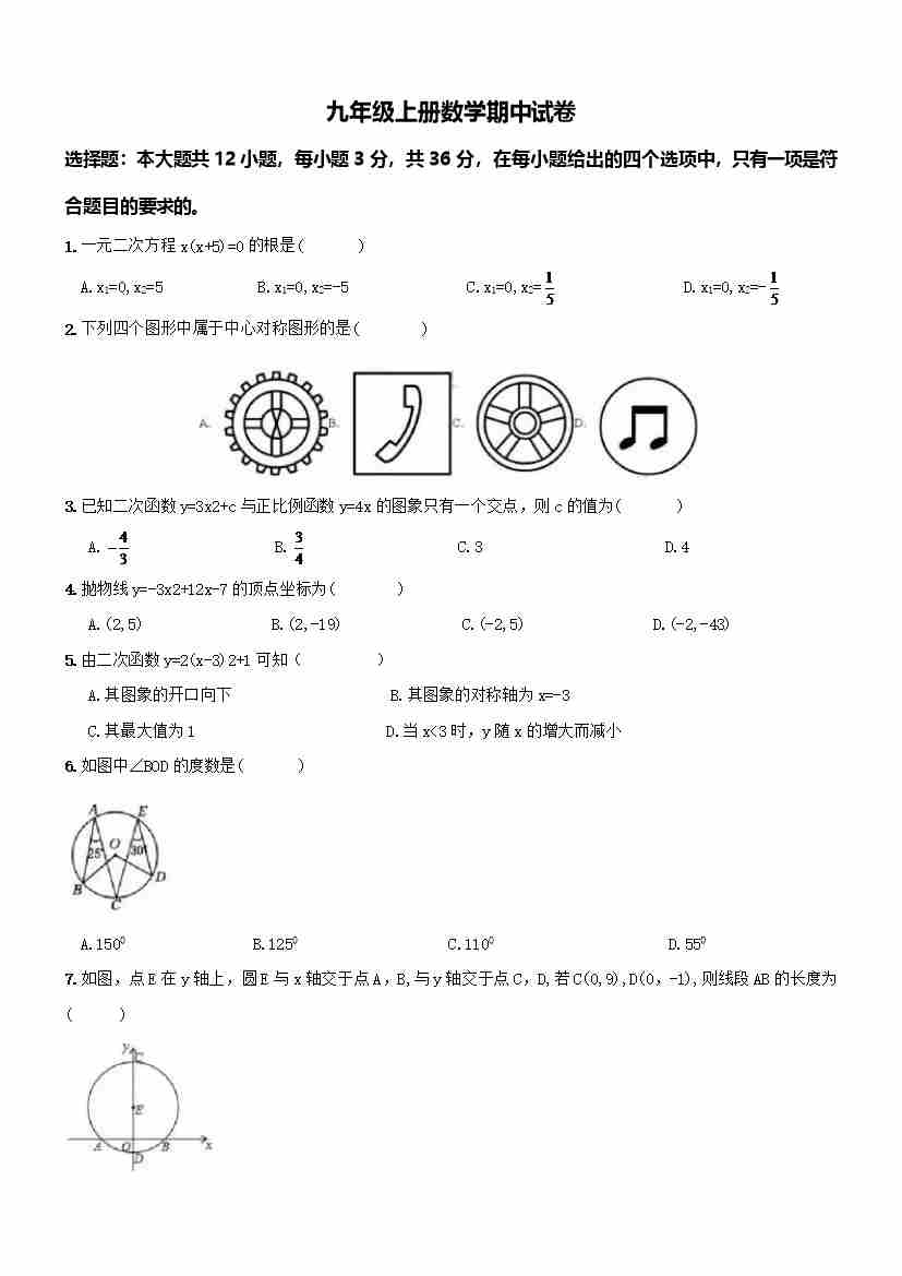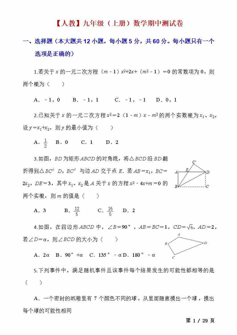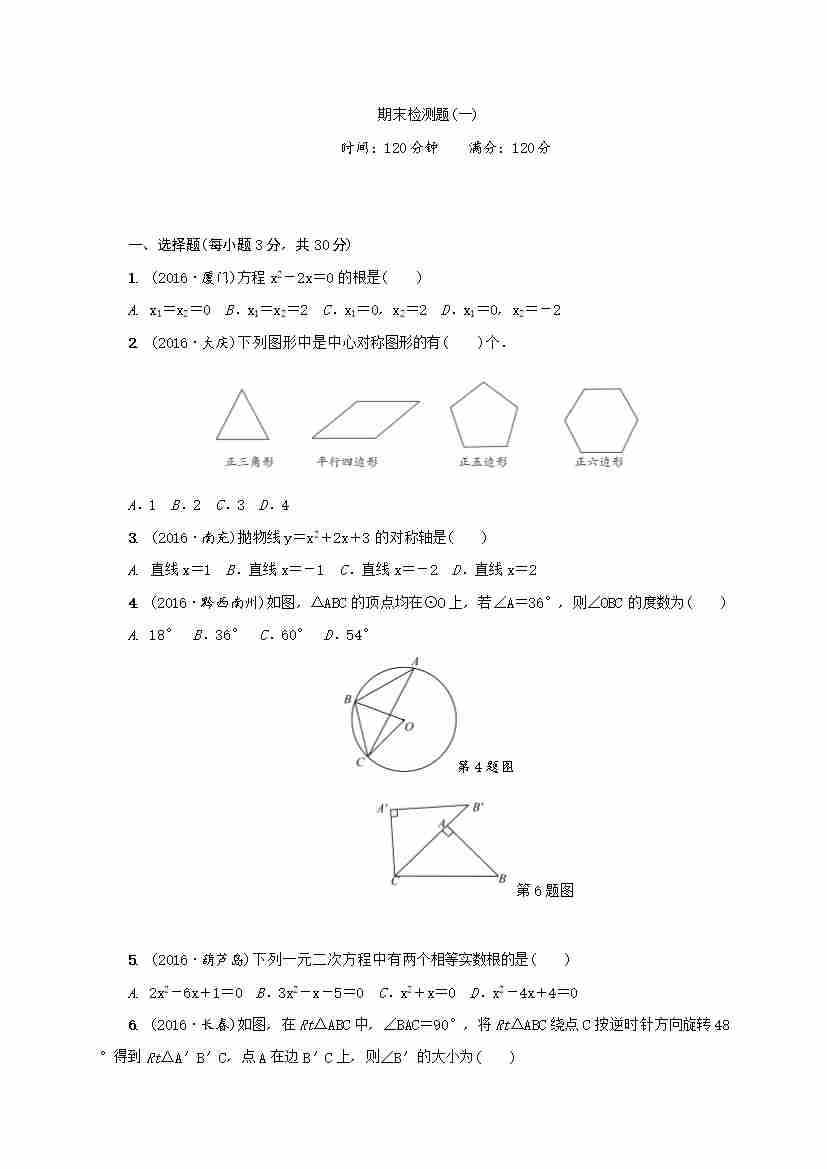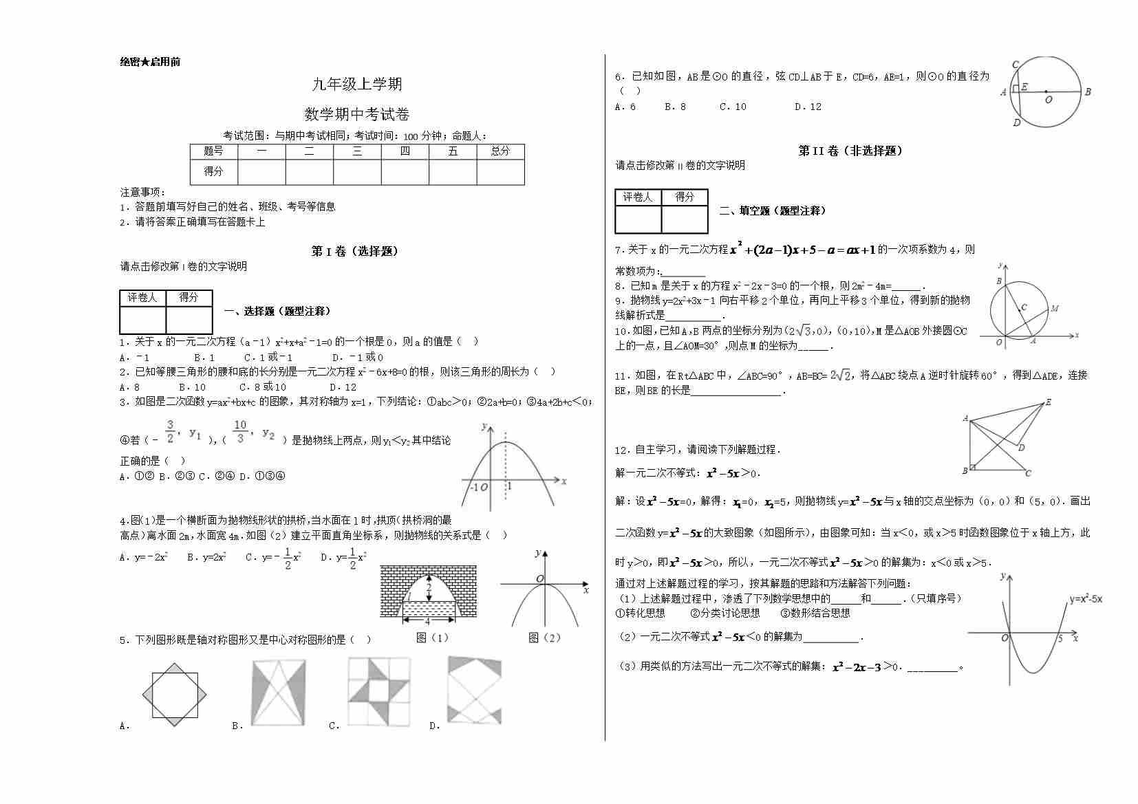 九上数学:【人教】期中模拟卷01【范围:21-24章】