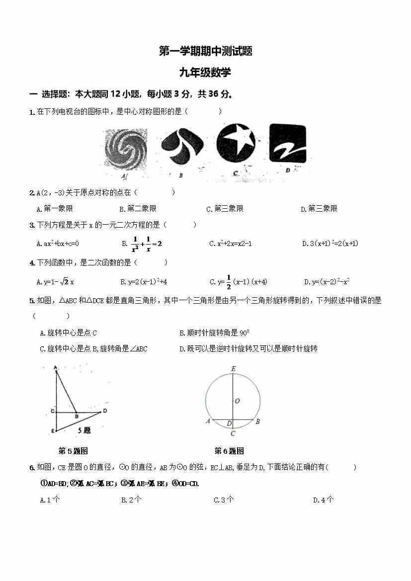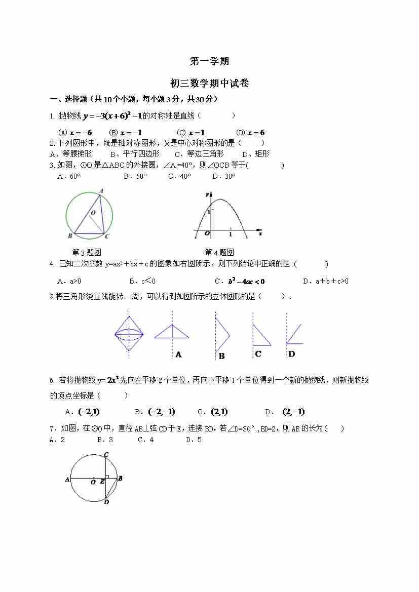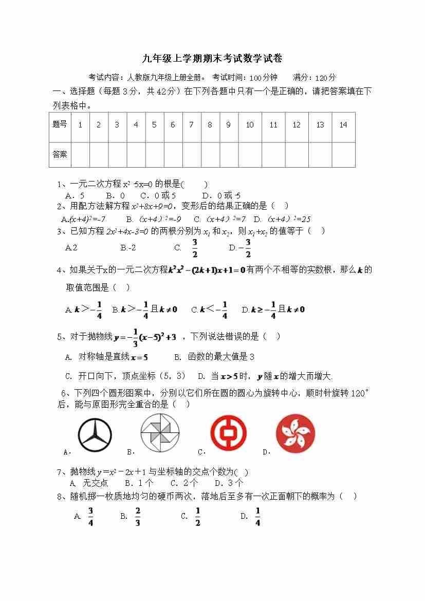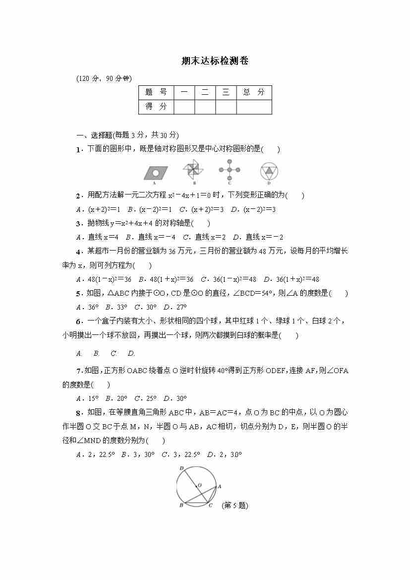 九上数学:【人教】期中模拟卷01【范围:21-24章】