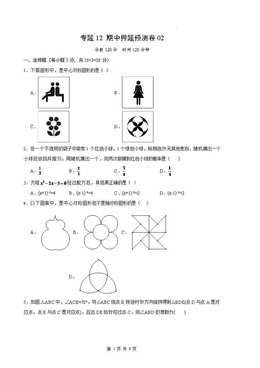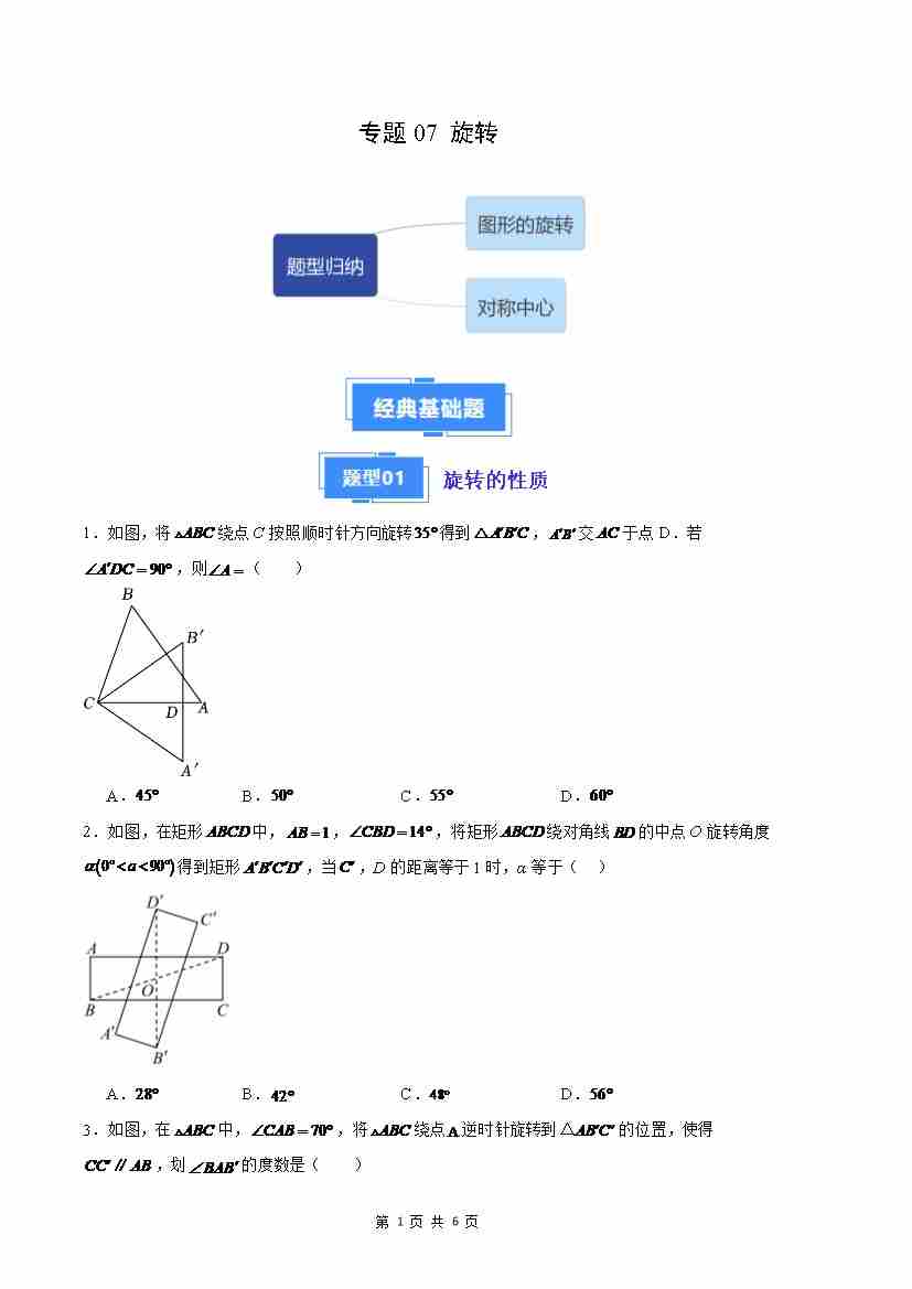 专题07 旋转(原卷版)(人教版)