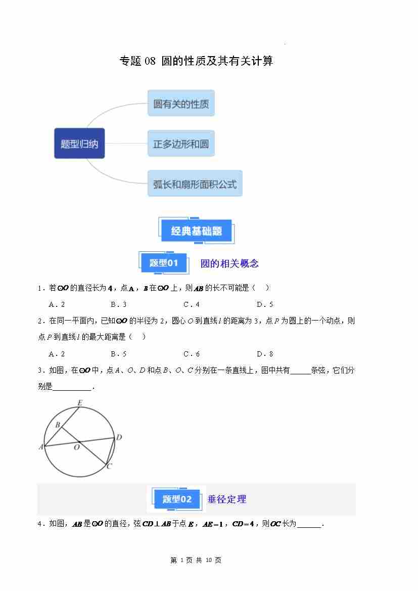 专题08 圆的性质及其有关计算(原卷版)(人教版)