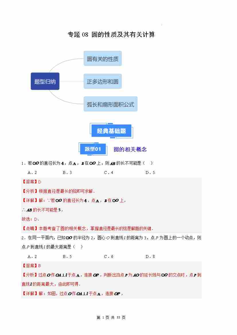 专题08 圆的性质及其有关计算(解析版)(人教版)