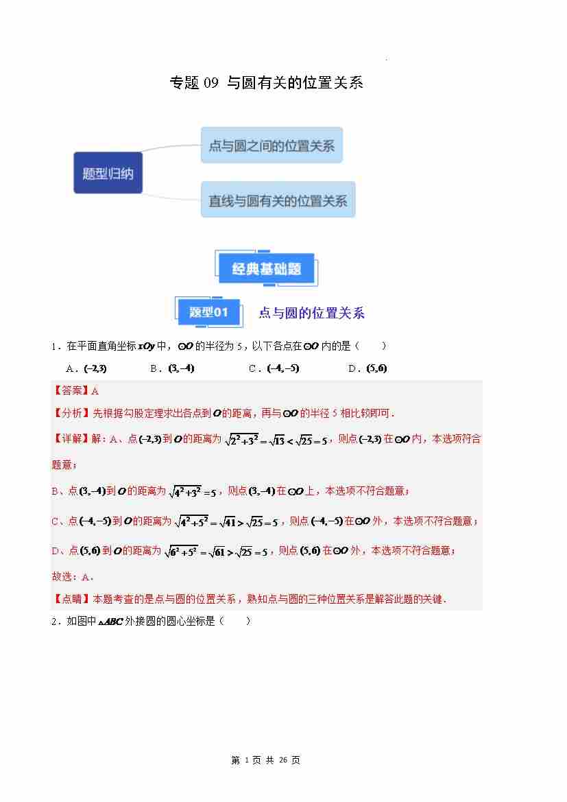 专题09 与圆有关的位置关系(解析版)(人教版)