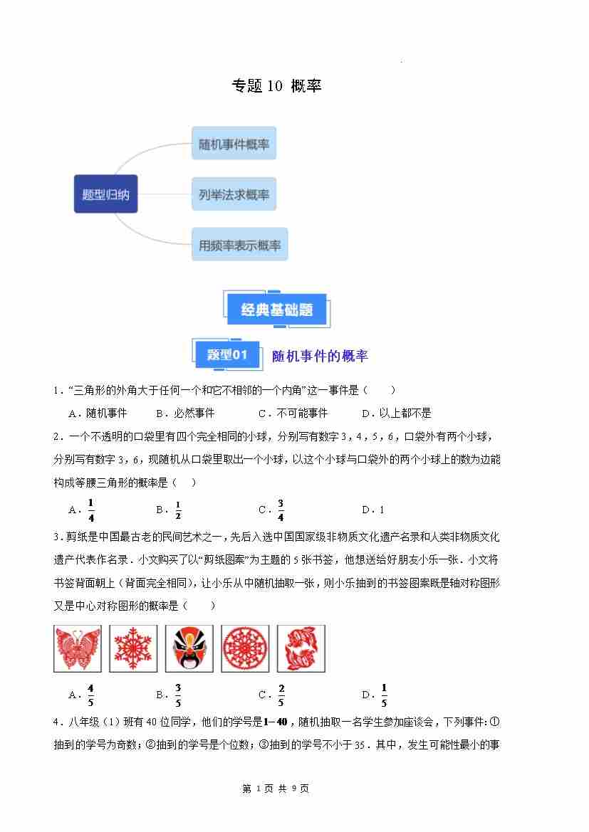 专题10 概率(原卷版)(人教版)
