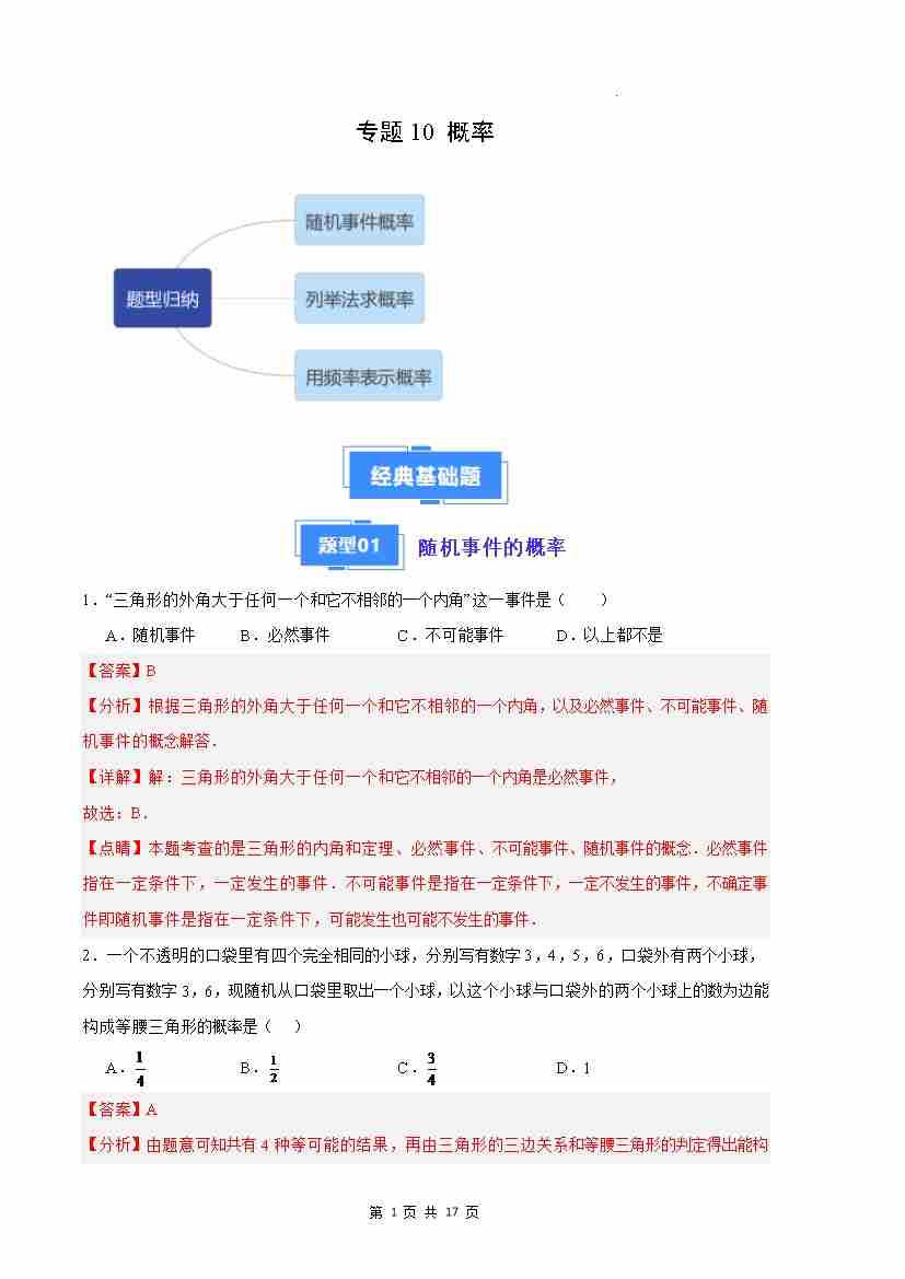 专题10 概率(解析版)(人教版)
