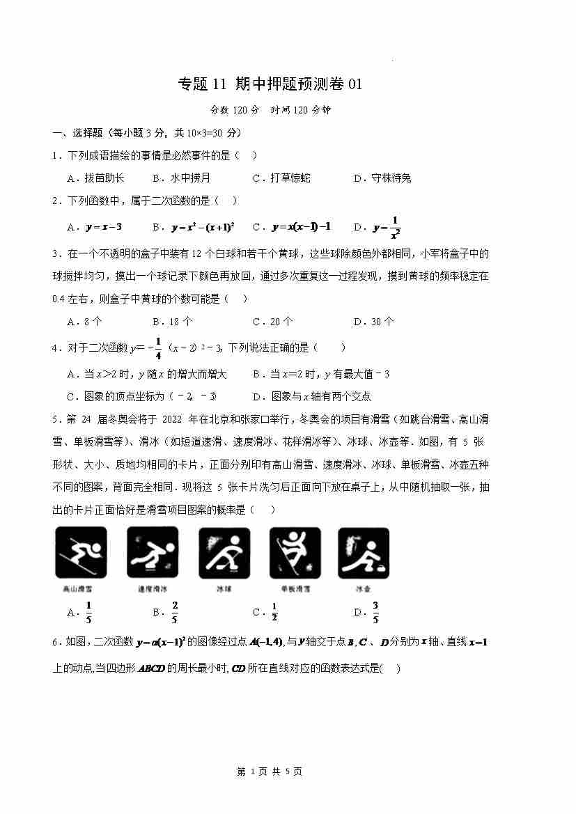 专题11 期中押题预测卷01(原卷版)(人教版)