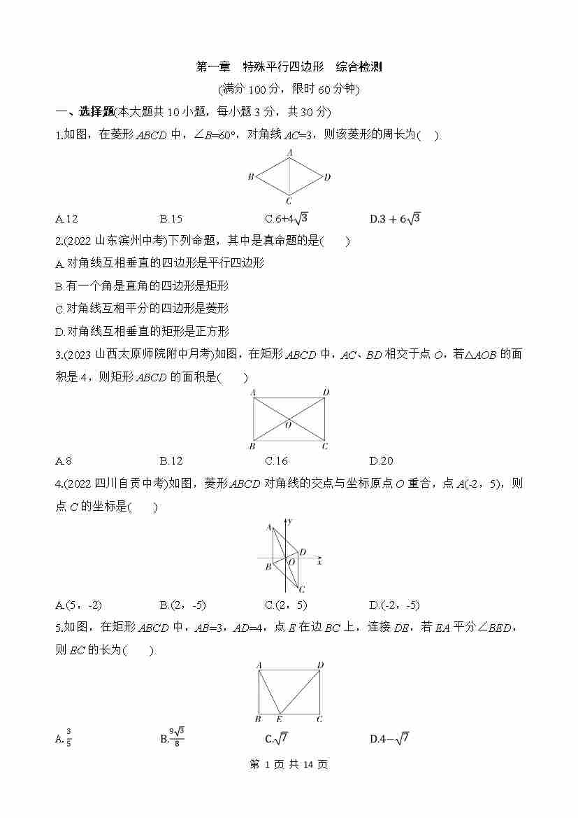 第一章 特殊平行四边形 综合检测