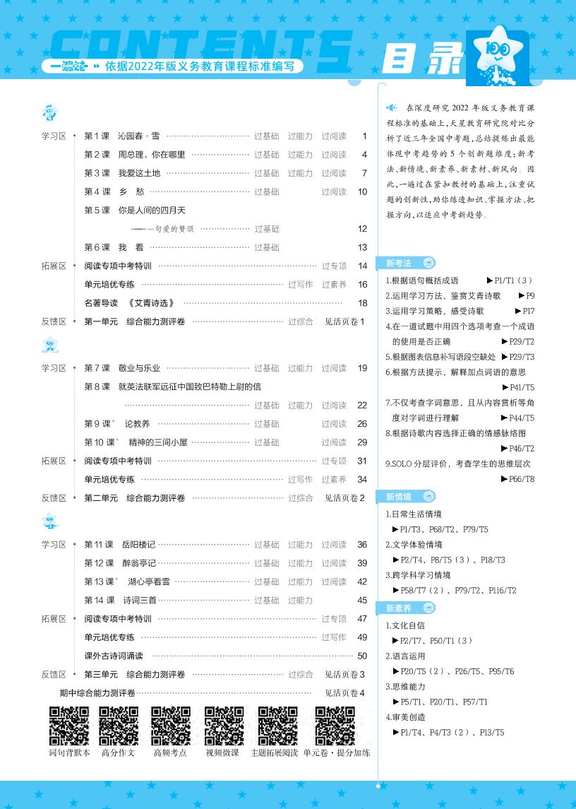 一遍过:2024版九上语文(人教) 答案版