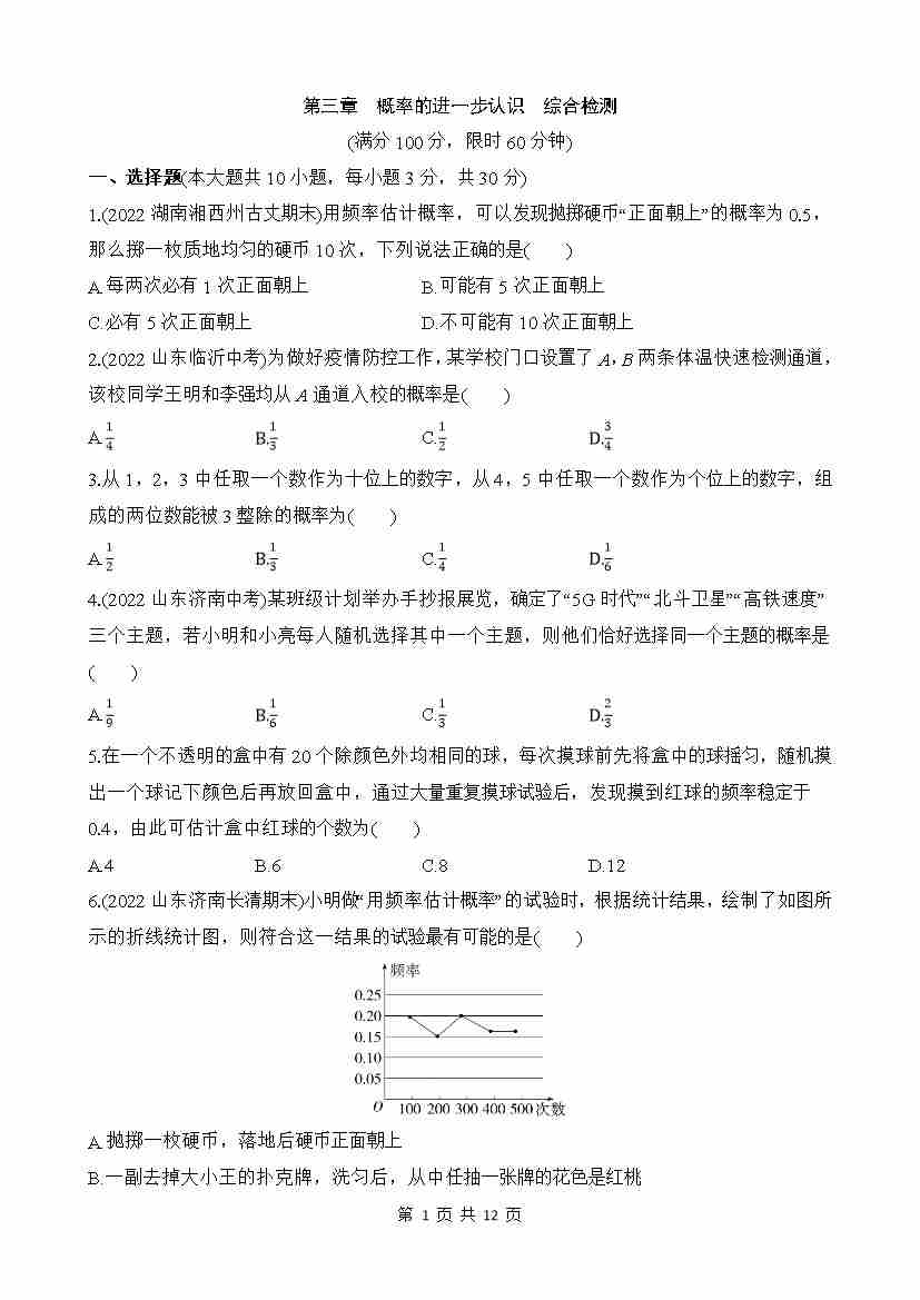 第三章 概率的进一步认识 综合检测