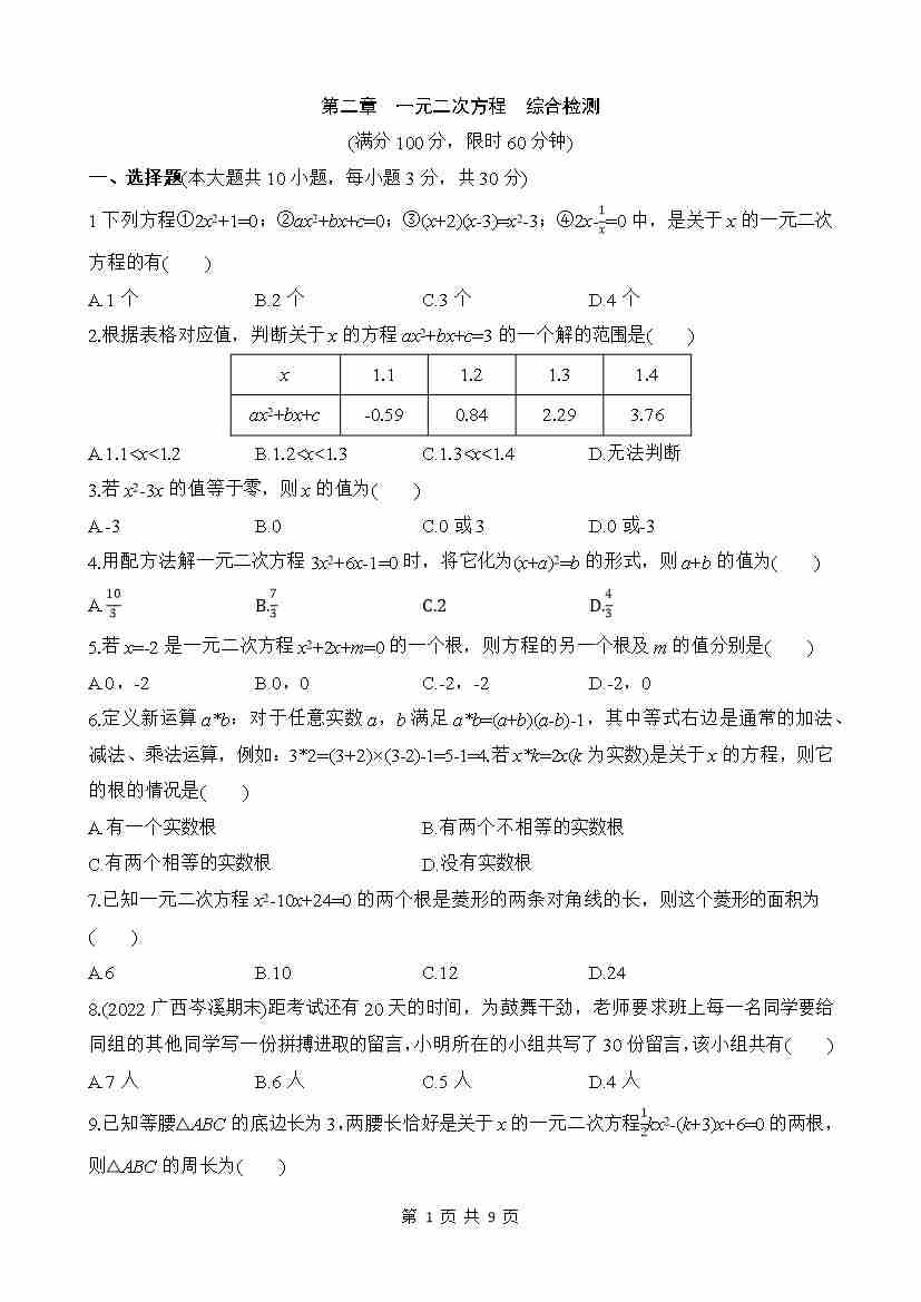 第二章 一元二次方程 综合检测