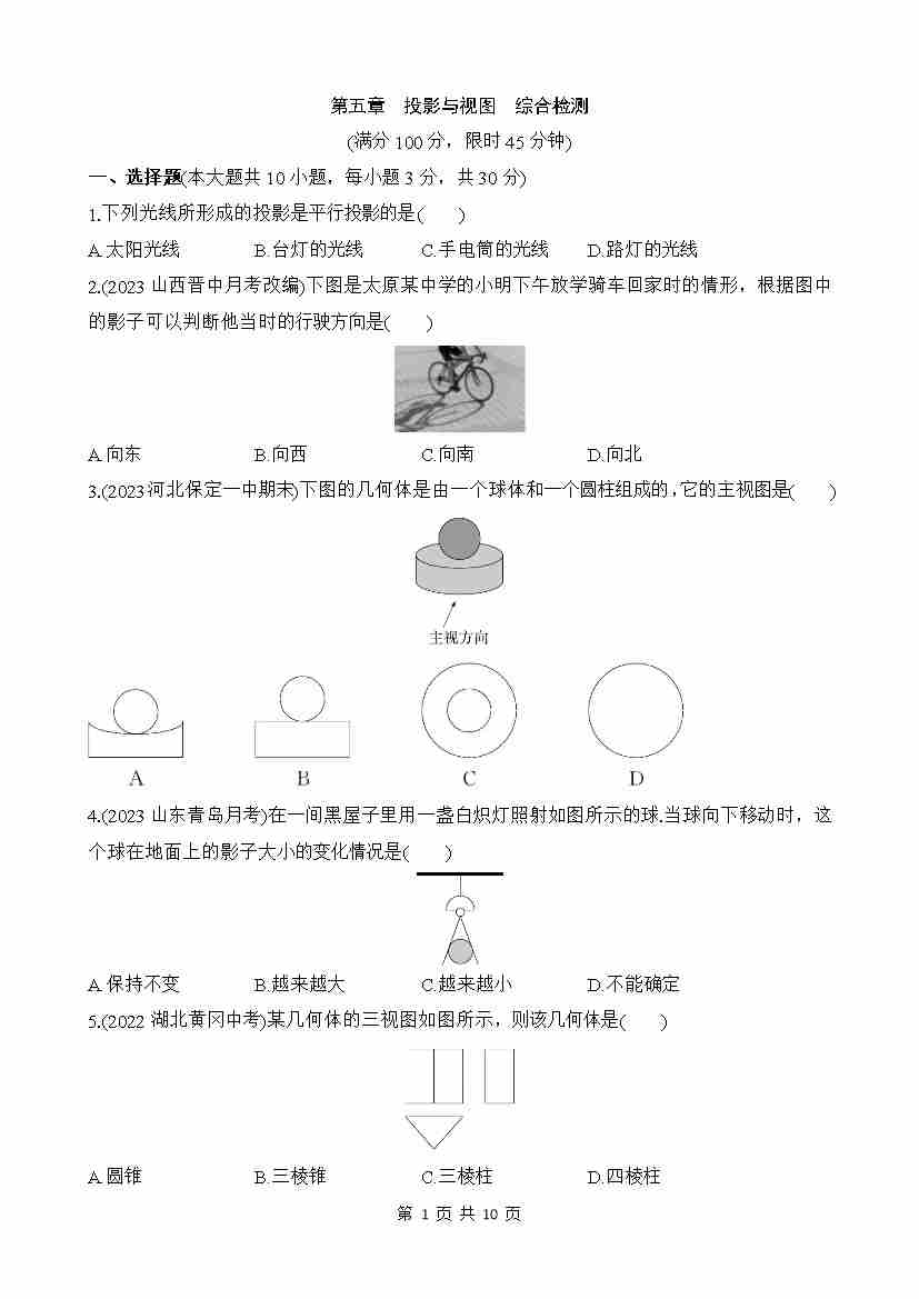 第五章 投影与视图 综合检测