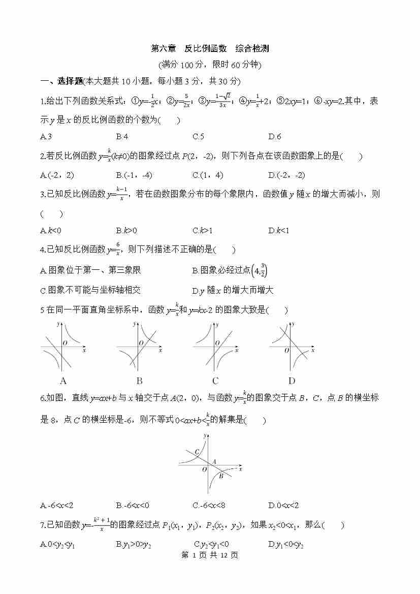 第六章 反比例函数 综合检测
