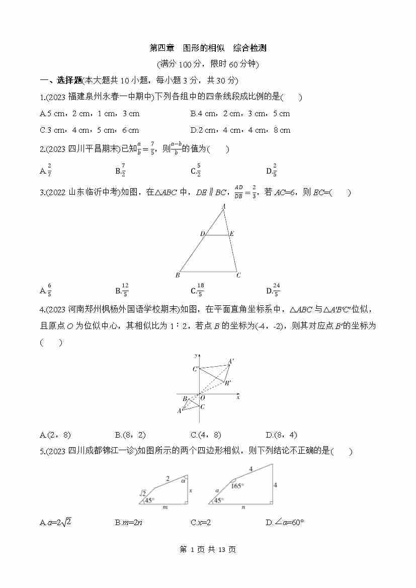 第四章 图形的相似 综合检测
