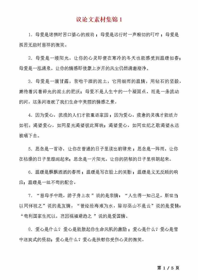 _九上语文议论文素材集锦