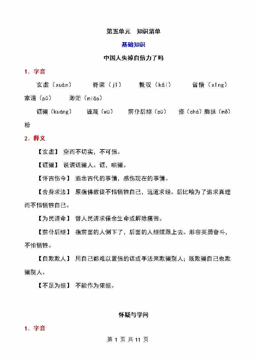 第五单元 知识清单
