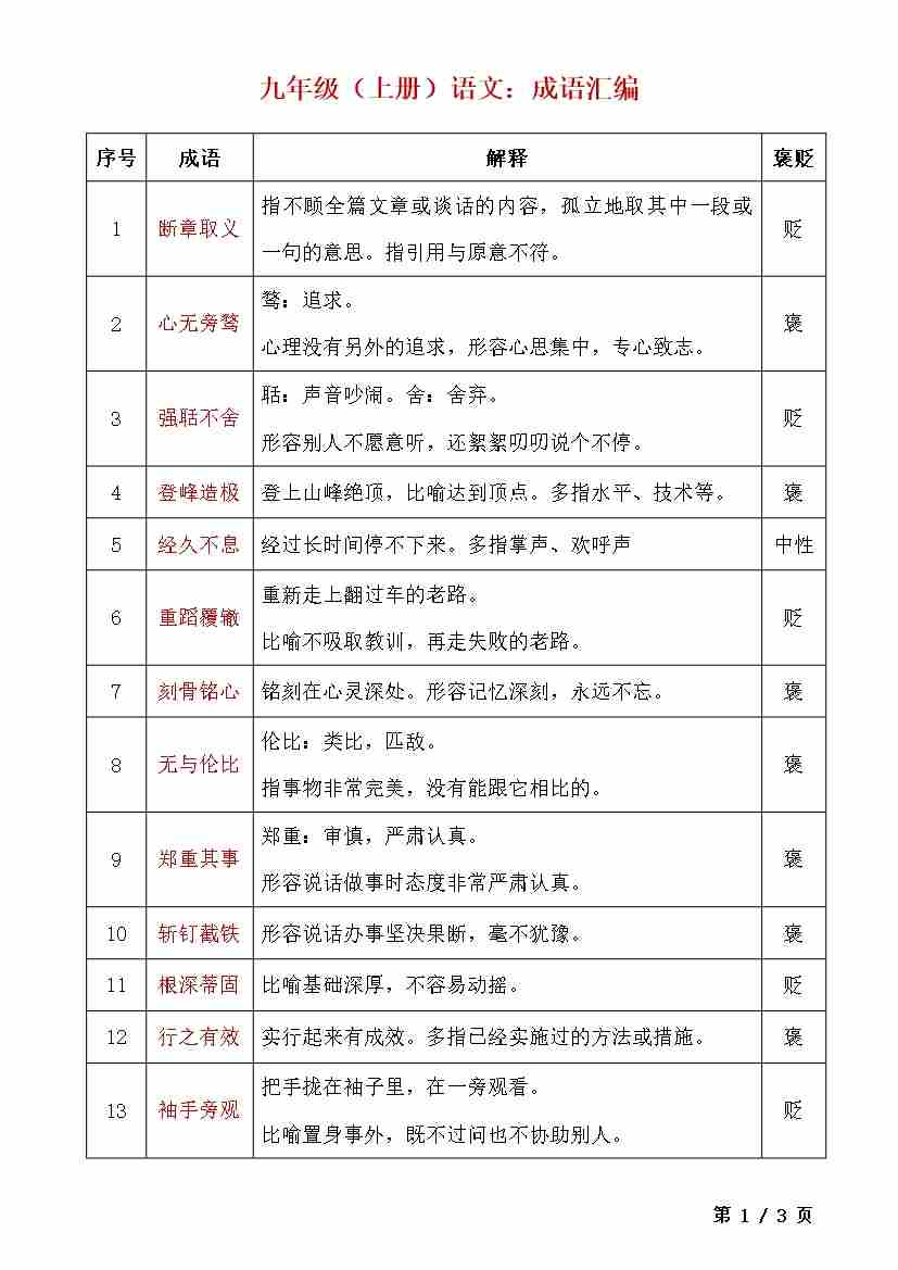 九上语文成语汇编