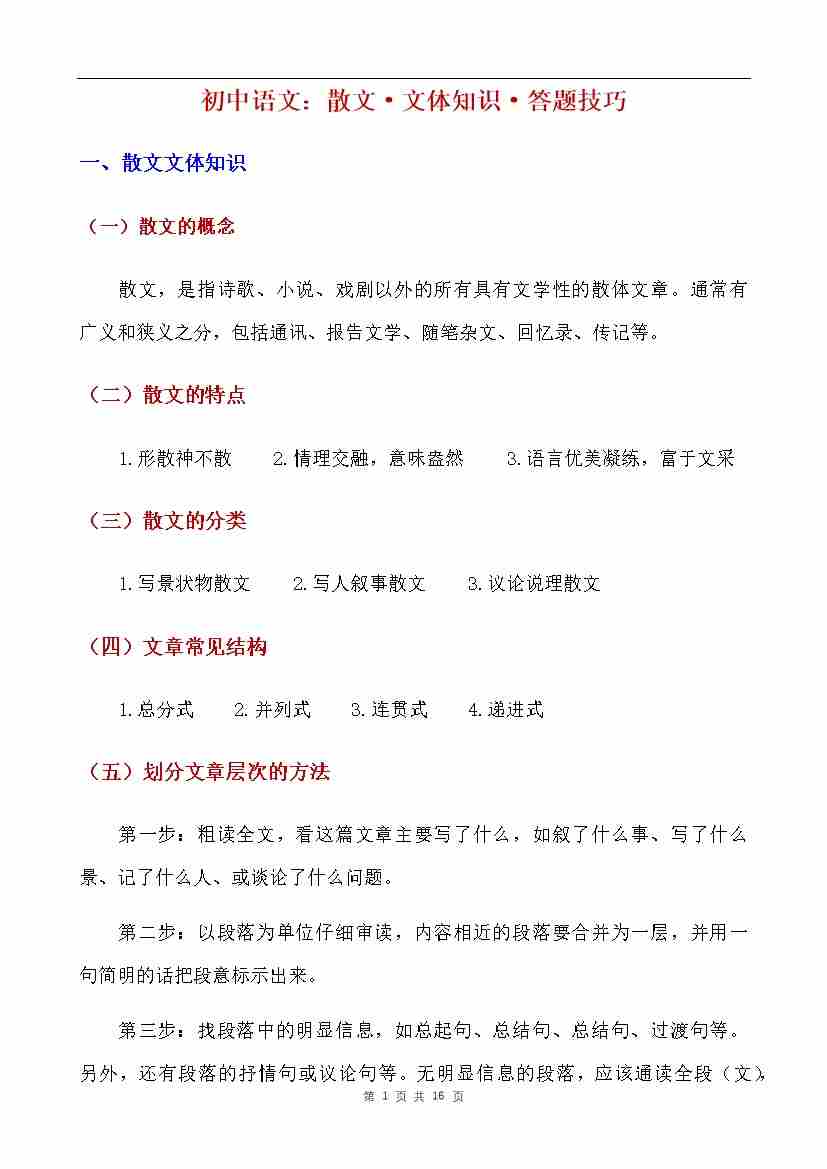 初中语文散文文体知识及答题技巧