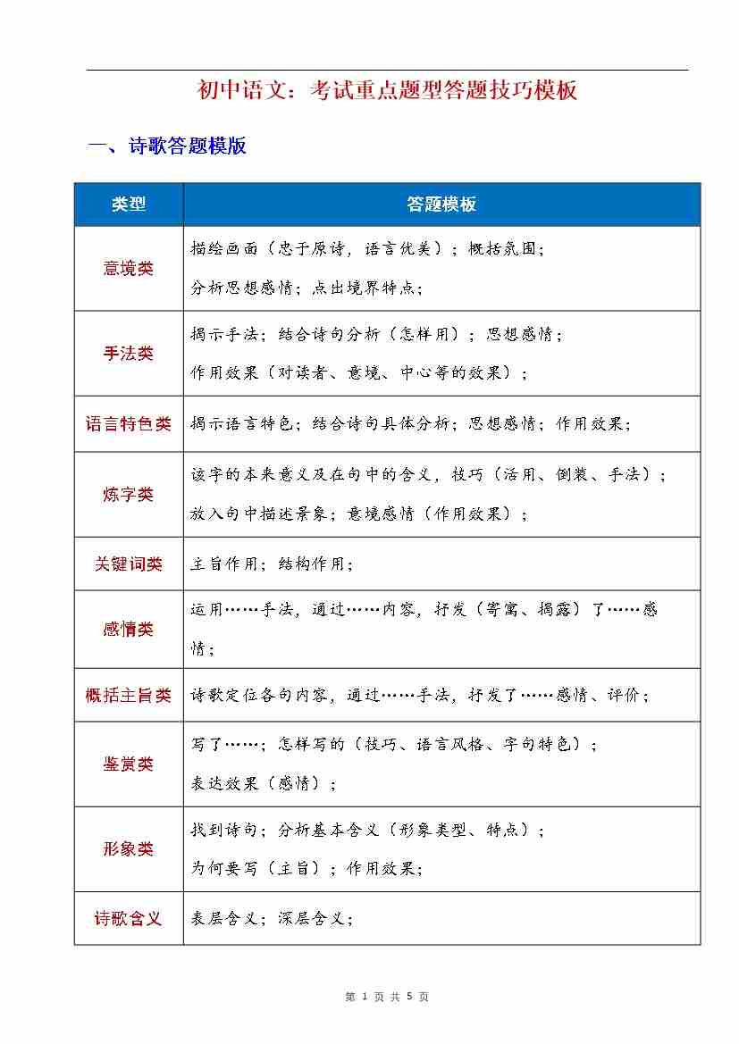 初中语文考试重点题型答题技巧汇总
