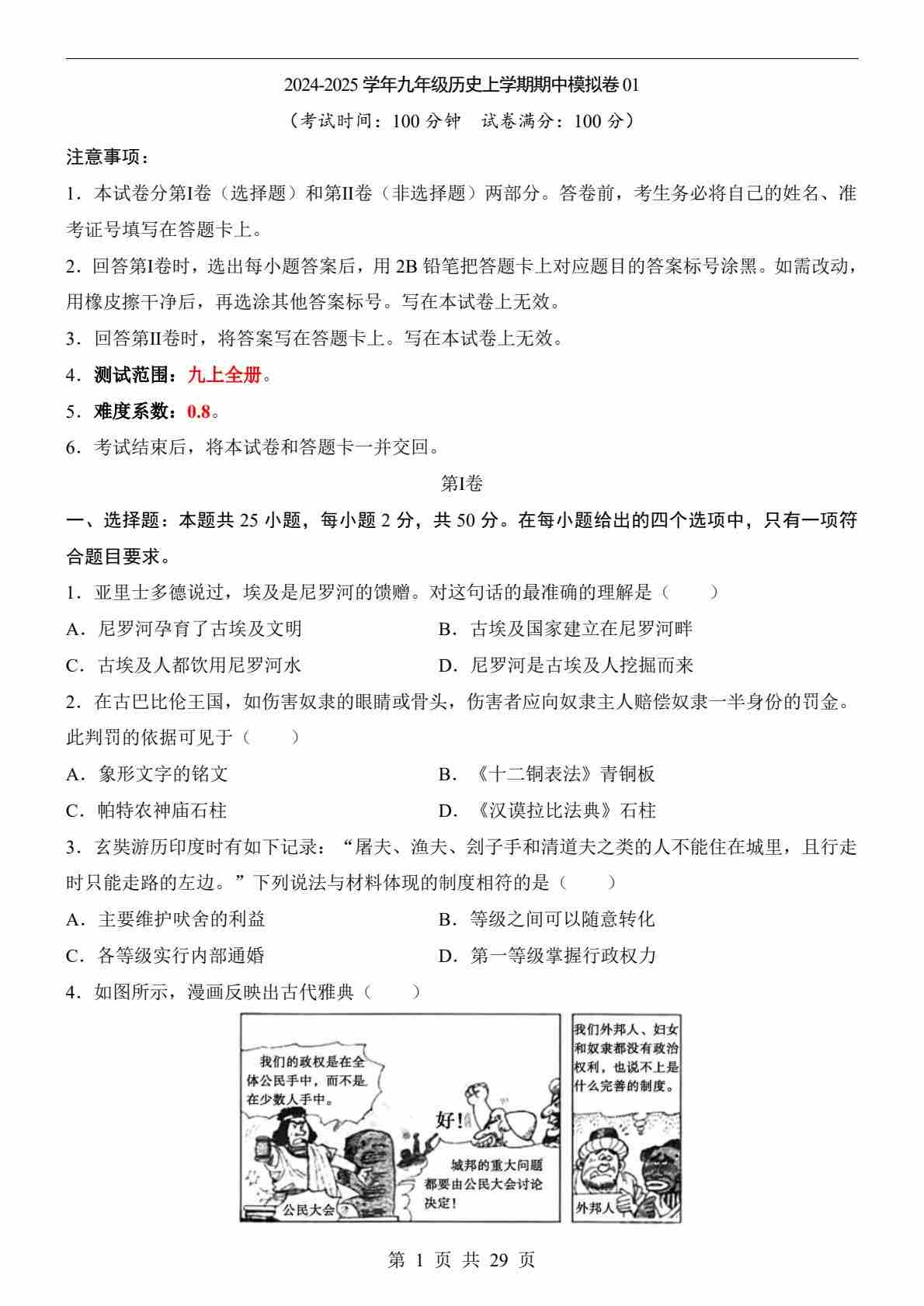 9上历史期中卷01【九上全部】