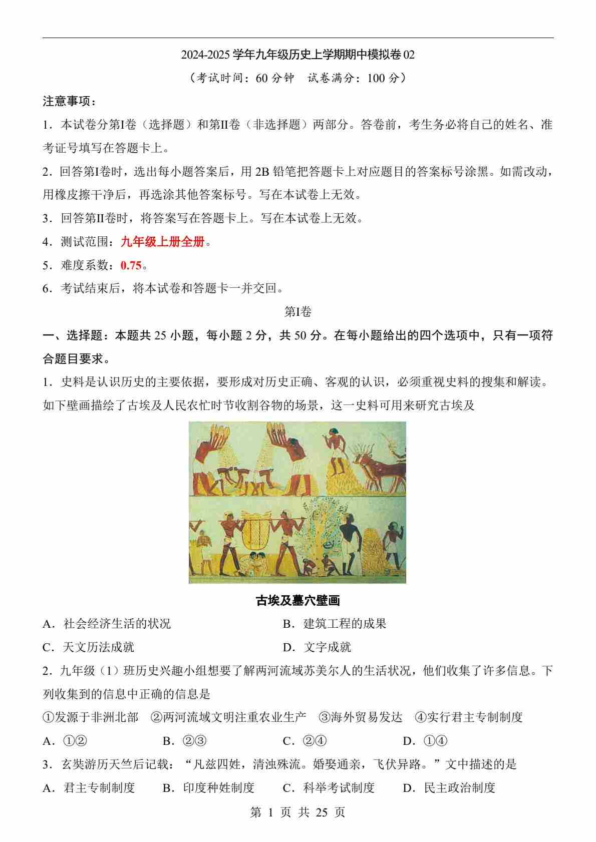 9上历史期中卷02【九上全部】
