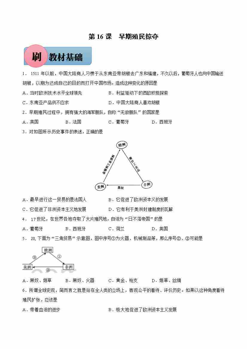 第16课 早期殖民掠夺【必刷题】