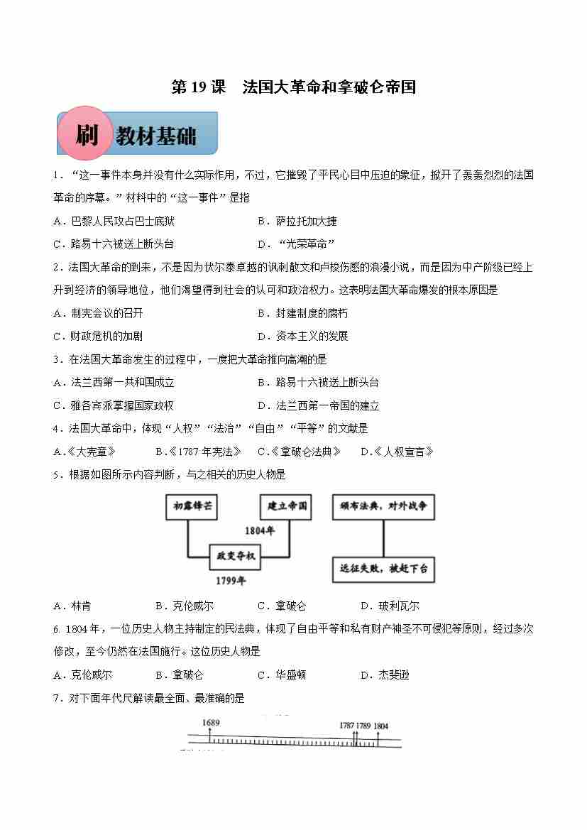 第19课 法国大革命和拿破仑帝国【必刷题】