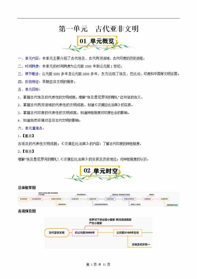 第一单元 古代亚非文明【速记清单】